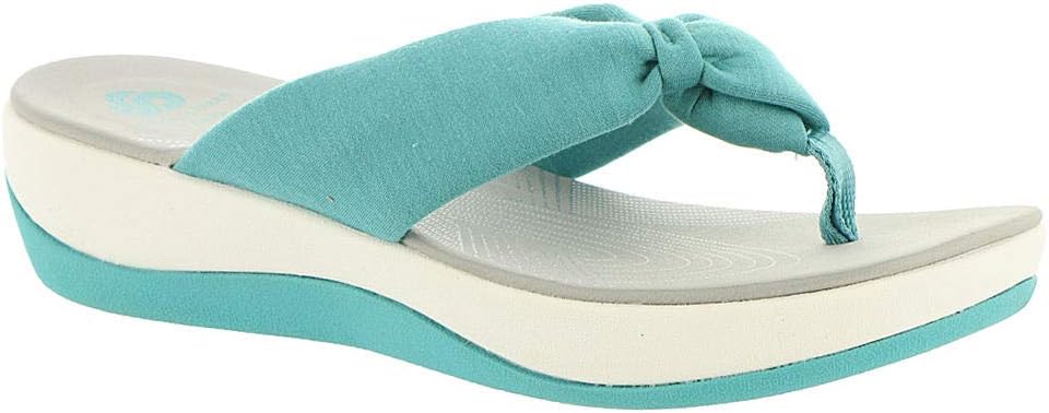 The Arla Glison from Clarks Cloudsteppers provides the best of comfort technology with classic feminine appeal. A fabric upper feels delicately soft between the toes, while an EVA midsole keeps the sandals feather light. The OrthoLite footbed with Cushion Soft technology ensures optimal comfort all day. An ultra-wearable flip-flop with no shortage of personality. Sole material TPR.