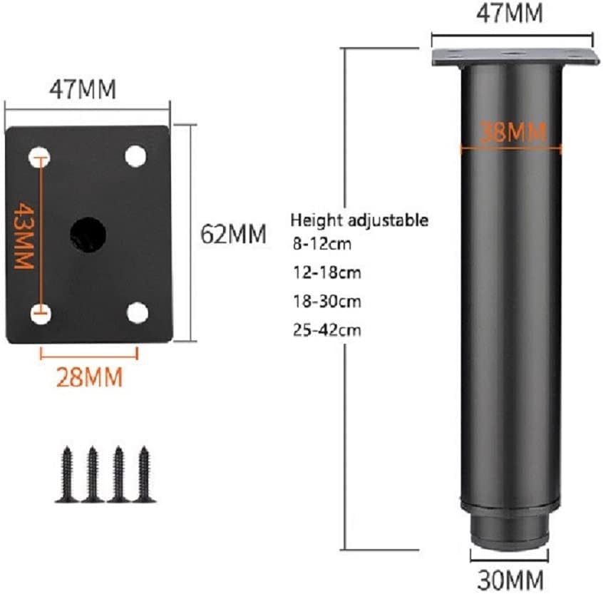 Features: and Adjustable height: adapt to different grounds to make the furniture stable. Right-angle support: It will not shake when is dispersed, and will not be due to a large . Strong load-bearing: suitable for all kinds of furniture, good and not easy to damage. Rubber base: Protective rubber , which can increase the friction with the floor. materials: All are iron, which is sturdy and . Specifications: Iron Color: Black/White 12 Adjustable Height: Approx. 12-18cm/4.72-7.09inch 18 Adjustable Height: Approx. 18-30cm/7.09-11.81inch 25 Adjustable Height: Approx. 25-42cm/9.84-16.54inch 8 Adjustable Height: Approx. 8-12cm/3.15-4.72inch Note: 1.Please allow 1-2cm errors due to manual measurement, make sure that you do not mind before you order. 2.Due to the difference between different monitors, the picture may not reflect the actual color of the item. Package includes: Furniture Legs