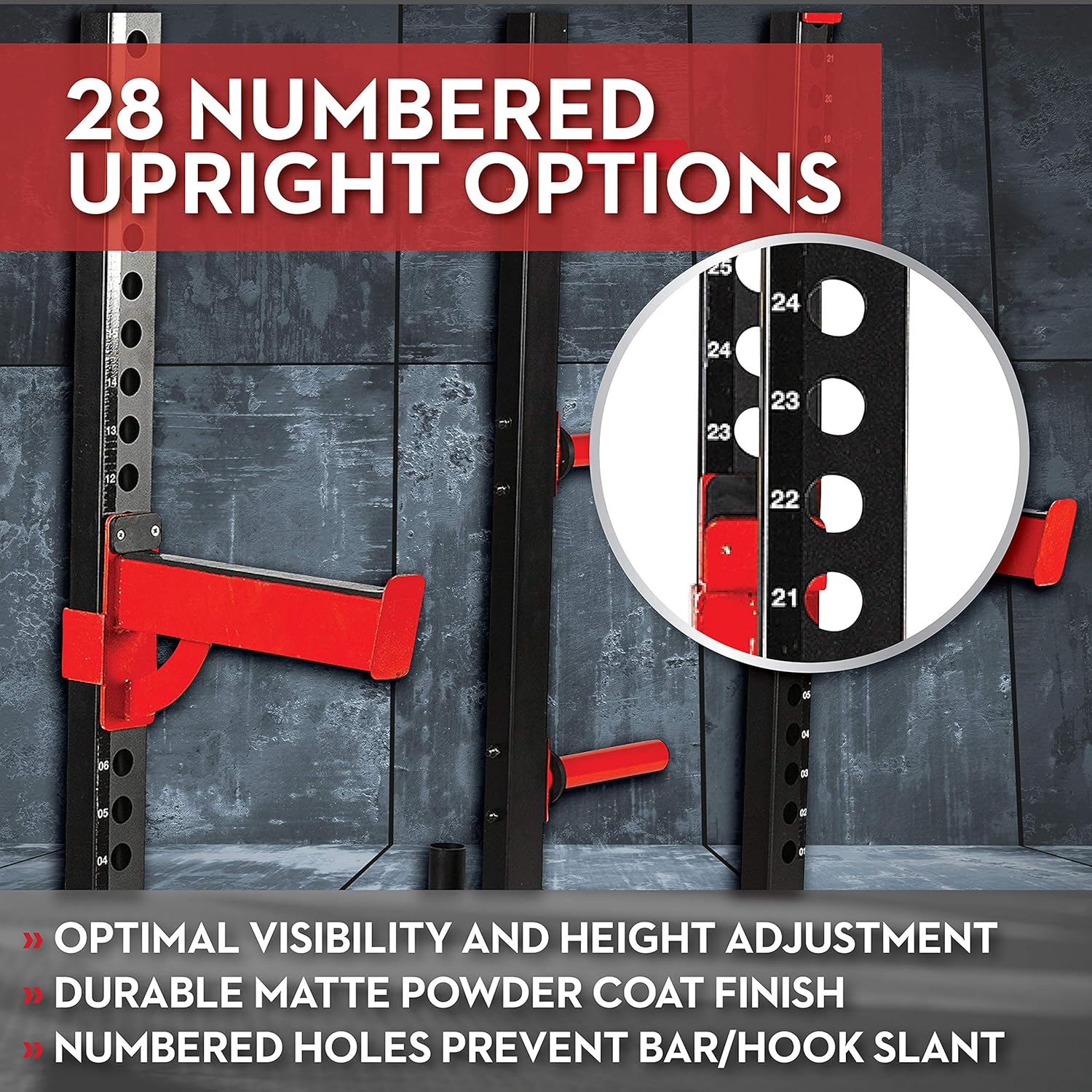 The Lifeline C1 Half Rack is perfect for Olympic WeightLifters and the Functional Training athlete who are looking for a home gym solution. It is perfect for low ceiling and cramped training areas like garages and basements; the C1 Half Rack can be the focal point of your home gym area, allowing all the other strength products and functional training tools to work off or around it. The C1 Half Rack is built using heavy duty 2''D x 3''W, 11-gauge steel framing with a floor mount base support designed to add stability; it has been tested to hold over 1,000lbs. The C1 Half Rack measures 86.5'' tall and has a 49 1/2'' x 49'' overall footprint; this provides enough inside depth for fitting a bench. We have included 28 numbered upright positions for optimal visibility and adjustment during your workout.