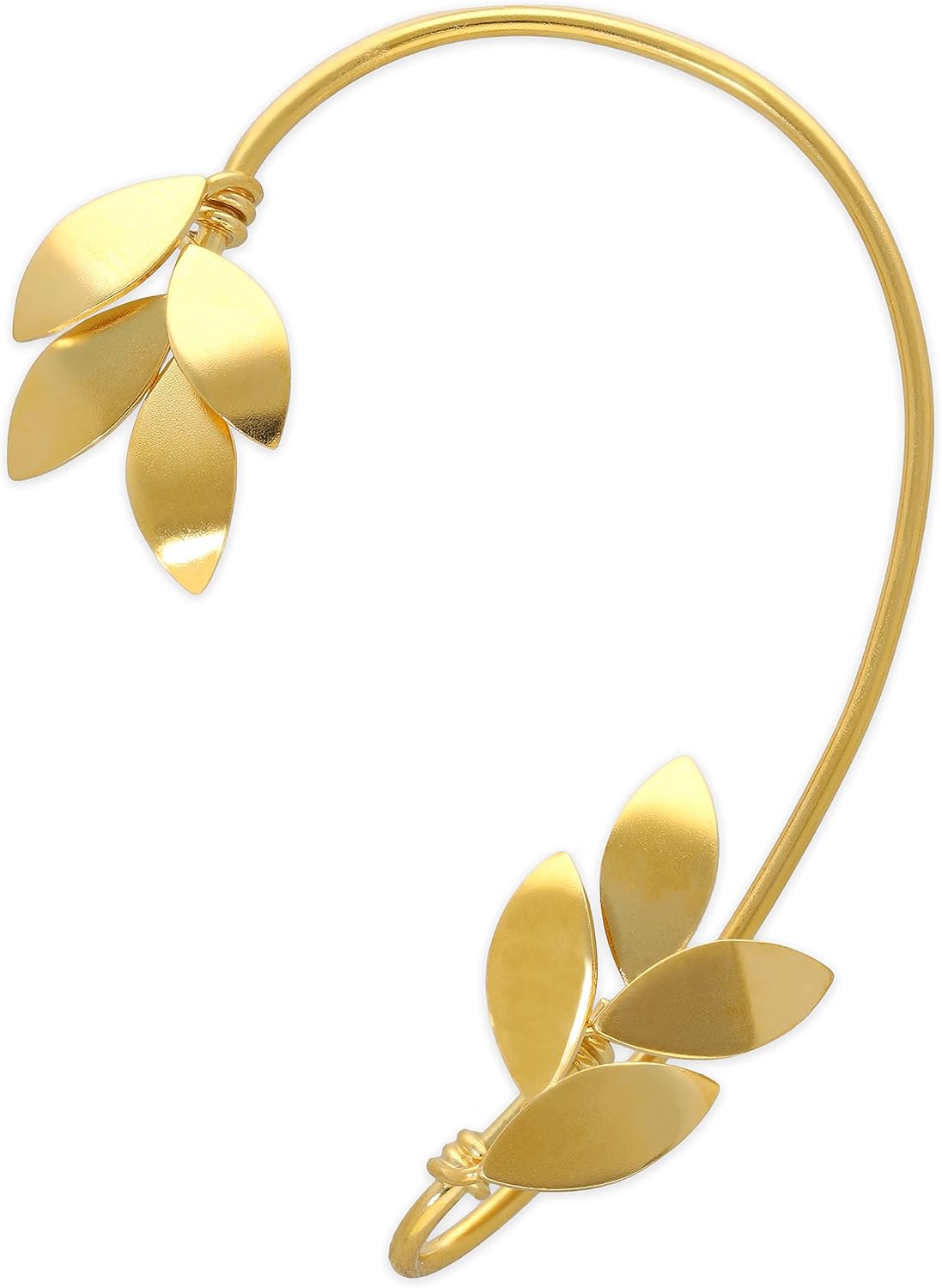 Discover this antique olive leaf ear cuff for the left ear - an elegant statement piece for anyone without pierced ears who appreciates Greek mythology and ancient design. A slender metal bar gently encircles the ear, while delicate olive leaves become visible at both ends - inspired by the sacred olive wreaths of the Greek goddess Athena. Completely piercing-free!Entirely handcrafted from 100% recycled 925 sterling silver with 925 hallmark, rhodium-plated for lasting beauty. The lovingly crafted olive leaf design draws inspiration from the sacred olive groves of ancient Greece - symbols of wisdom, peace and divine blessing from the goddess Athena. A piece of jewelry for lovers of Greek mythology.The narrow bar sits comfortably behind the left ear, while the olive leaves peek out subtly above and below. The ancient design lends timeless elegance - perfect for special occasions, cultural events or as a daily statement for women who appreciate classical beauty.The supple sterling silver can be optimally adjusted to the ear through gentle pressure and creates the impression of a pierced ear without requiring any piercing. Simply clips on and can be removed at any time.100% nickel-free and hypoallergenic - suitable for sensitive skin and nickel allergies. No irritation, no discomfort.Technical Details: Height 6cm (2.36"), weight 3.6g. Single piece for the left ear with antique Greek olive leaf design.What's Included: Boutique packaging with branded gift box made from recycled cardboard, velvet pouch and recycled paper bag.Care Instructions: Wipe with soft cloth. Protect from water and chemicals. Store in velvet pouch.