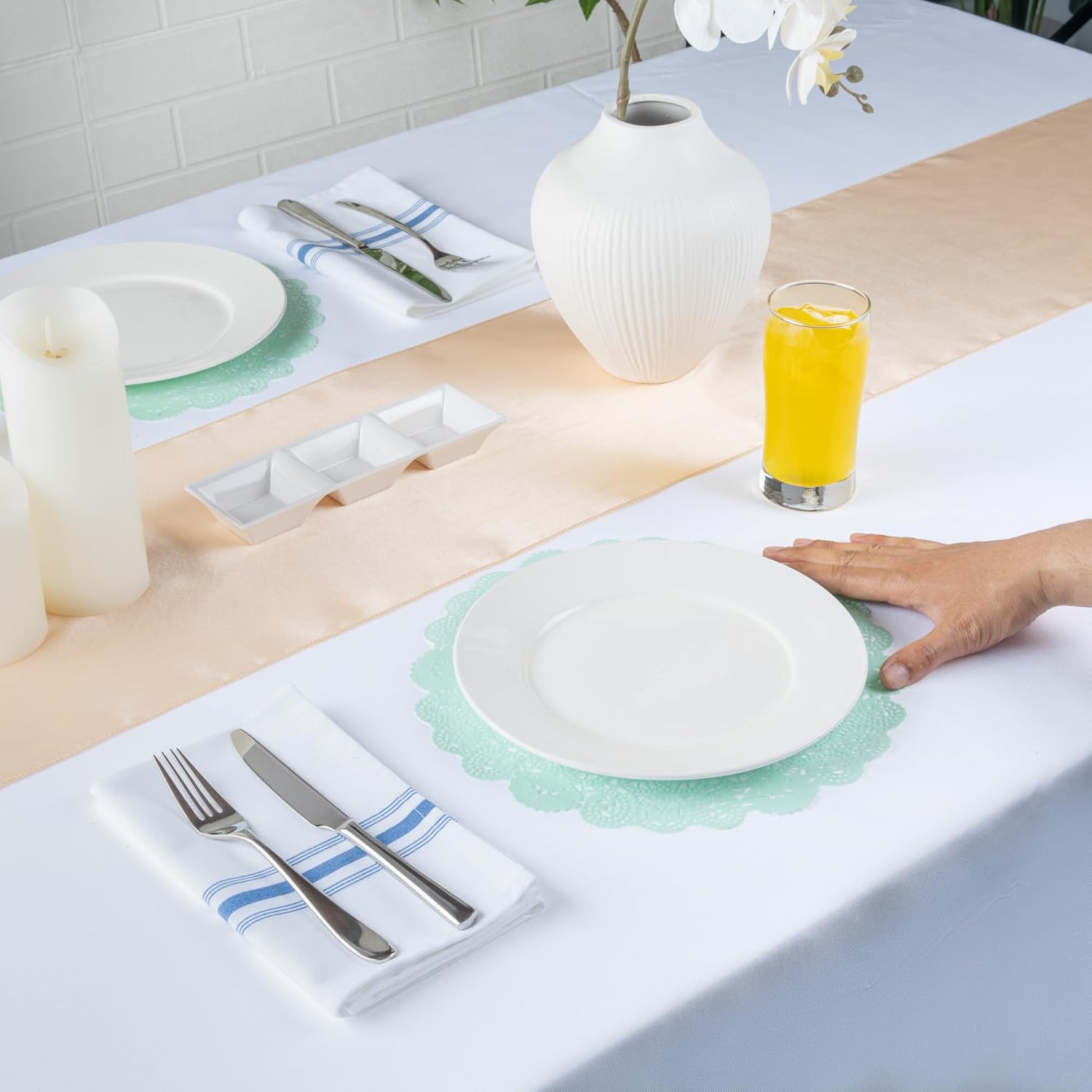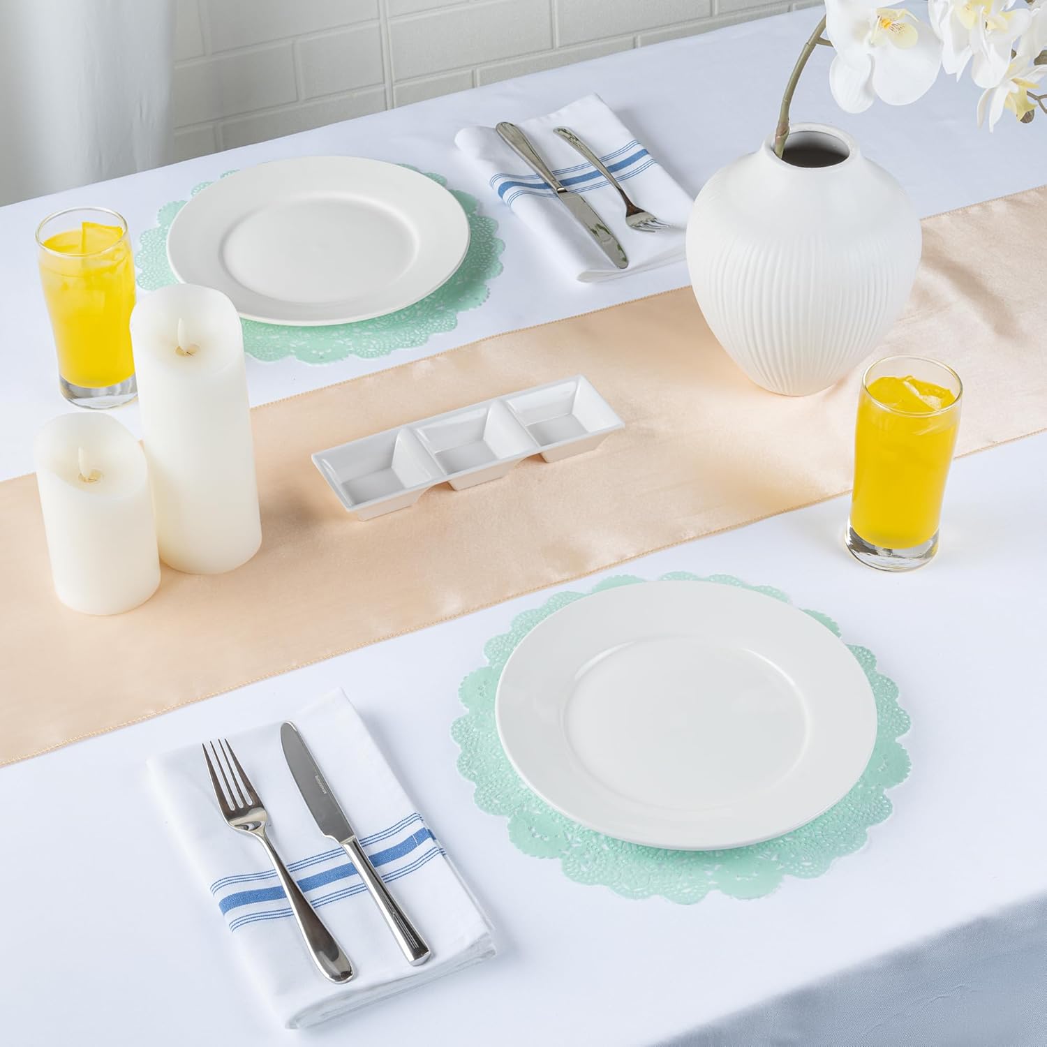 Enhance your dessert displays with our Pastry Tek Round Teal Paper Doilies, the perfect addition to any food presentation. Crafted from premium paper, these lace doilies provide exceptional durability, allowing you to display desserts at bakeries or catered luncheons without tearing or losing their structural integrity. Designed with intricate lace-like details, these table doilies increase the visual appeal of food presentations while serving as functional barriers that protect surfaces and absorb moisture. The teal finish of these colored paper doilies is versatile, complementing a wide range of table settings and themes, making them ideal for various events and occasions. Perfect for busy hosts and food establishments, these disposable paper doilies eradicate the hassle of post-event cleanup, offering a convenient and time-saving solution. These small doilies are perfect for use under cupcakes, petit fours, macarons, and other small treats. Measuring 12 inches in diameter, these lace doilies fit perfectly on standard serving trays and dessert displays. Sold in a 4,000 count box.