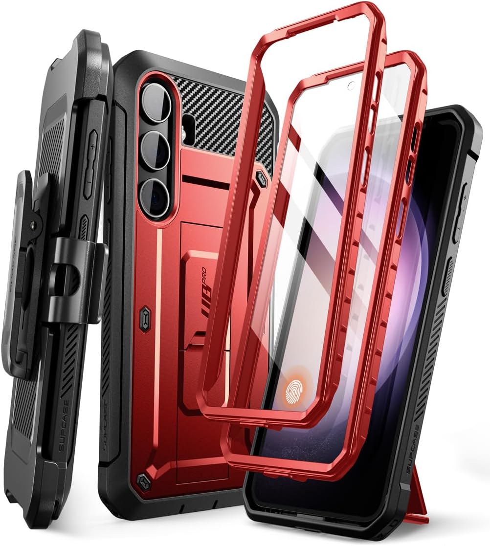 | BuiltIn Media | 1 * Galaxy S24 Case with Kickstand, 1 * Rotatable Belt-Clip, 2 * Front Frames |